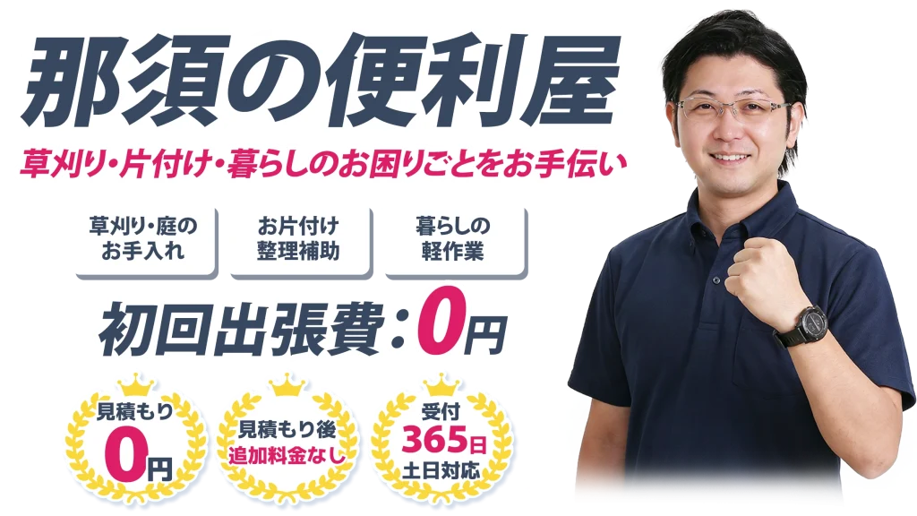 草刈り・片付け・家具移動・不用品整理など、暮らしの中の「ちょっと困った」「誰に頼めばいいか分からない」に対応しています。那須町近郊で、地域密着で柔軟にお手伝いいたします。